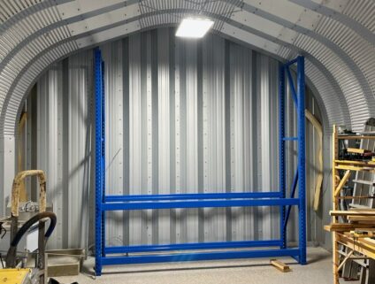 - Overlapping construction – Steel panels overlap with one another as the building is being bolted together.